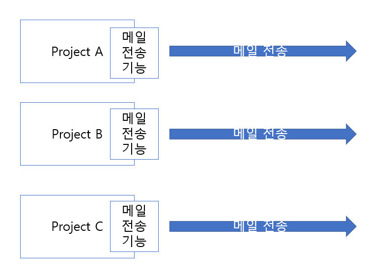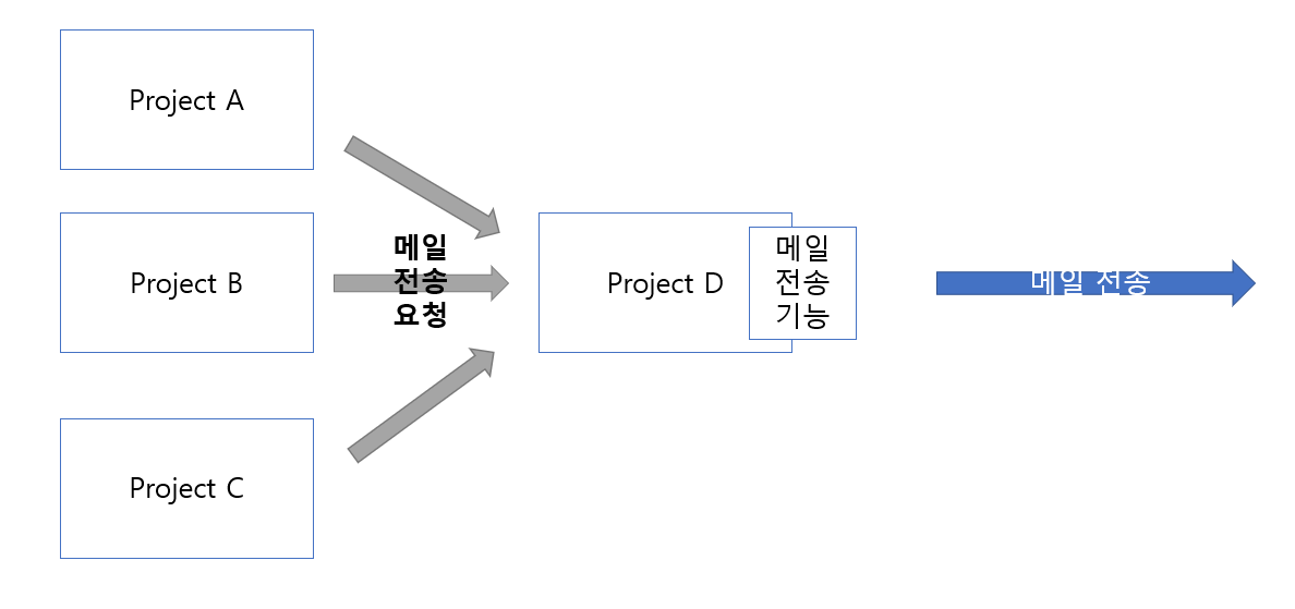 여러 개의 프로젝트가 회원에게 메일을 전송합니다. 그래서 메일을 전송하는 프로젝트를 따로 생성하여